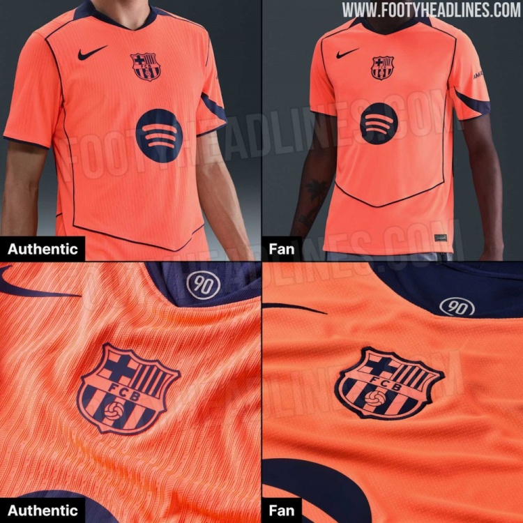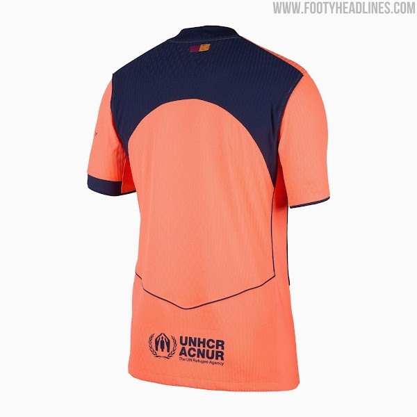 必发官网-巴萨8月19日发布2025/26赛季第三球衣:亮橙色主色调搭配深海军蓝